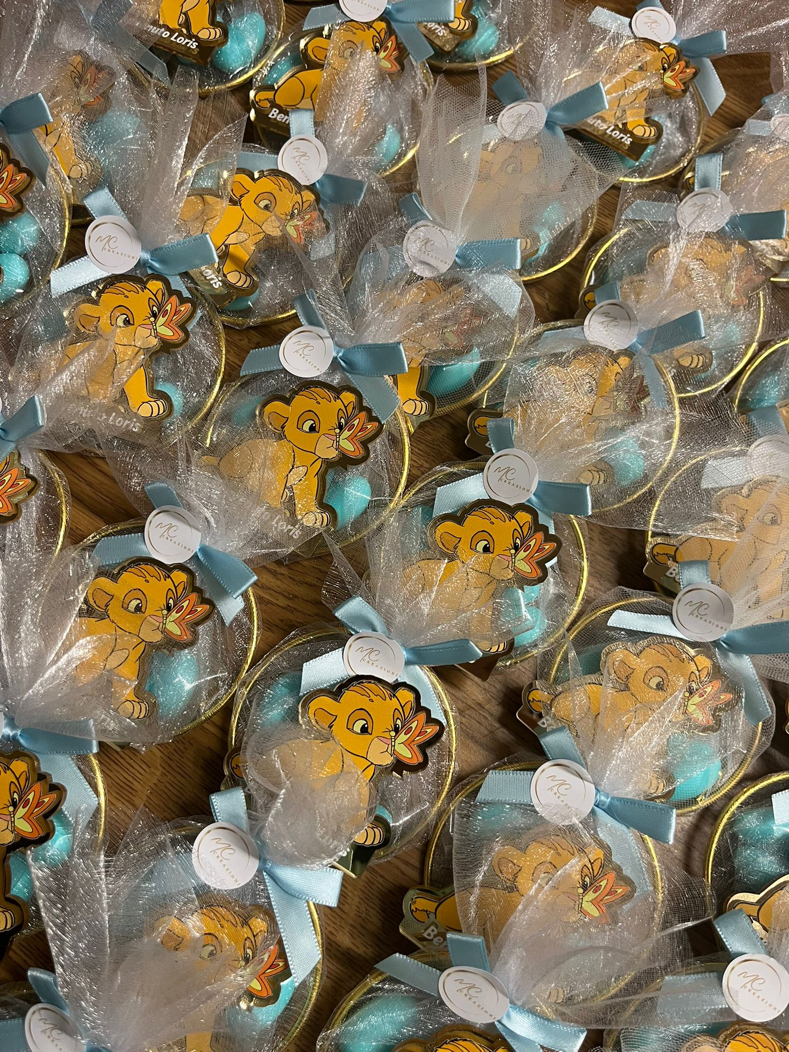Bomboniere tema Re Leone complete – Fiocco in tulle, cerchio decorativo e personaggio in plexiglass