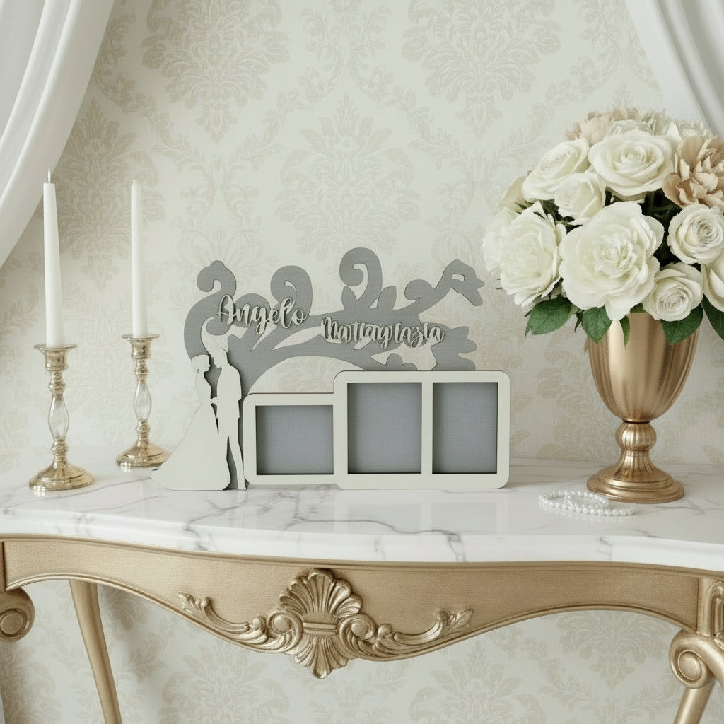 Dai valore ai tuoi ricordi più preziosi con questa elegante cornice multipla da 3 posti, impreziosita da un raffinato Albero della Vita e dalla personalizzazione del nome. Perfetta come complemento d’arredo per la casa o come regalo unico e significativo, questa cornice mette in risalto fotografie di famiglia, momenti speciali, ricorrenze o eventi importanti.