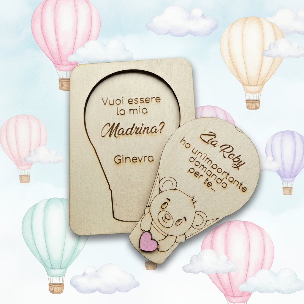 Regalo madrina e padrino battesimo - Mongolfiera Personalizzato